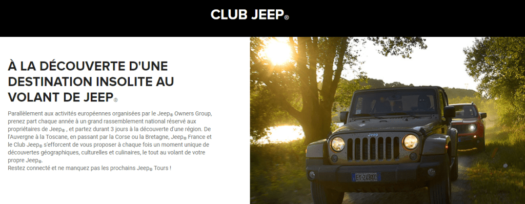 JEEP joue aussi sur ce levier pour fédérer les passionnés de voiture : le Club JEEP.