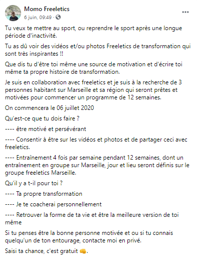 Les ambassadeurs évangélisent les non-initiés en communiquant leur passion. Pour gagner le cœur des indécis, la transparence “Je suis en collaboration avec Freeletics…” est essentielle pour faire comprendre comment la startup essaie d’améliorer leur vie.